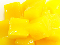 タイの熱い日差しをいっぱいに浴びたマンゴーをダイス状にカットして、ヘビーシラップで仕上げました。アイスやマンゴープリンのトッピングなど、デザートメニューに最適です。鮮やかな黄色が食欲をそそります。